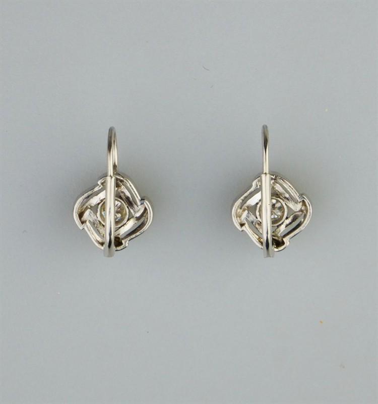 náušnice z bílého zlata s cizelovaným matovaným povrchem se dvěma diamanty briliantového brusu o celkové hmotnosti cca 0,3 ct, Au 3,91 g/750/1000, západní Evropa, kolem r. 2000, pozdější český punc (kohout); rozměry 1,7 x 1,2 x 1,2 cm