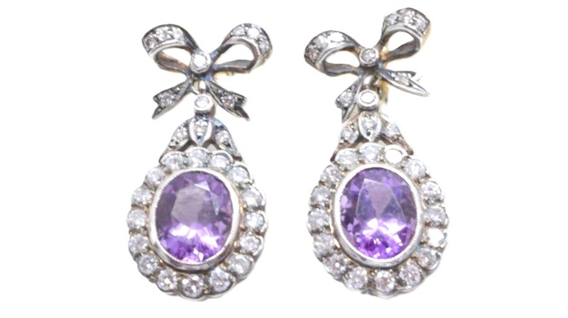 č. 180 047 Zlaté náušnice s diamanty a ametysty