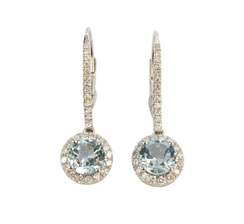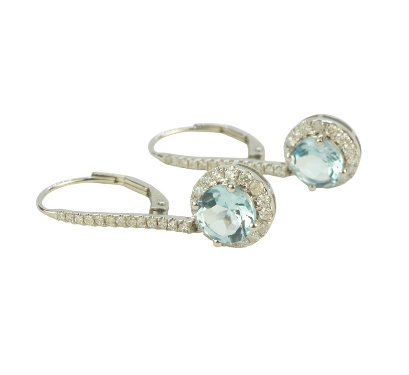 Náušnice z bílého zlata ryzosti 585/1000 zdobené diamanty o celkové hmotnosti 0,50 ct a topazy o hmotnosti 1,70 ct. Celková hmotnost obou náušnic je 2,90 g. Rozměry 2,5 x 1,0 cm.