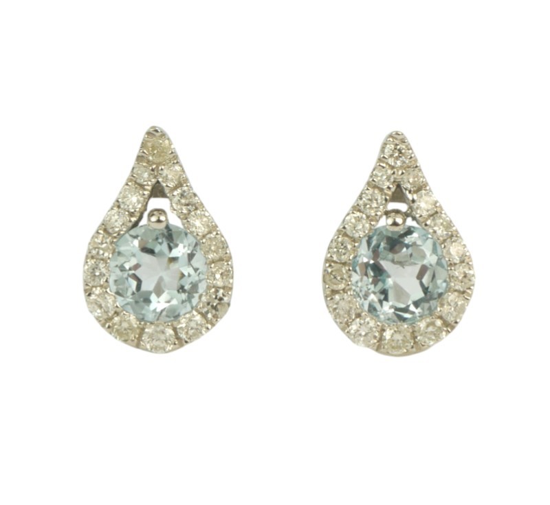 Náušnice z bílého zlata ryzosti 585/1000 zdobené diamanty o celkové hmotnosti 0,20 ct a topazy o hmotnosti 0,40 ct. Celková hmotnost obou náušnic je 1,72 g. Rozměry 0,9 x 0,7 cm.