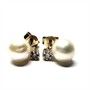 Elegantní, nadčasové náušnice se zapínáním na puzetu. Zhotoveny ze 14ti karátového zlata (585/1000), o celkové váze 2,26 . Náušnice zdobí sněhobílá, souměrná, hladká perla o průměru 7,45 cm a briliant. Příjemně nositelný, klasický šperk v perfektním stavu.