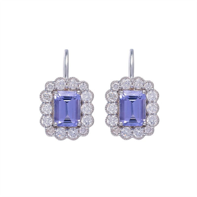 Zlaté náušnice s přírodními tanzanity a přírodními diamanty