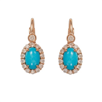 č. 182 205 Zlaté náušnice s tyrkysy a diamanty