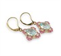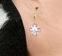Náušnice ze žlutého zlata ryzosti 585/1000 s růžovými safíry, topazy a diamanty briliantového brusu o celkové hmotnosti 0,60 ct. Celková hmotnost obou náušnic je 4,27 g. Rozměr ověsu 16 x 15 mm, délka 3,2 cm.