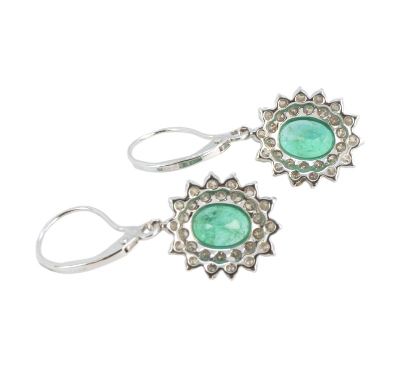 Náušnice z bílého zlata ryzosti 585/1000 jsou osazeny smaragdy a diamanty briliantového brusu o celkové hmotnosti 1,40 ct. Celková hmotnost obou náušnic je 3,41 g. Délka náušnice 3,1 cm.