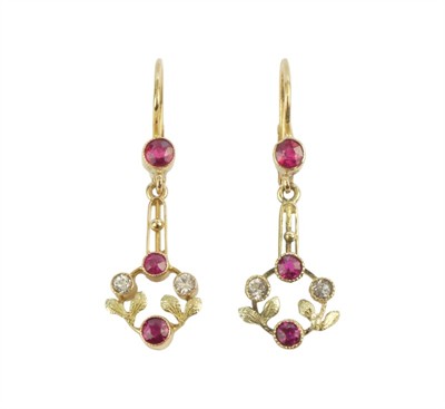 č. 179 403 Zlaté secesní náušnice s rubíny a leukosafíry