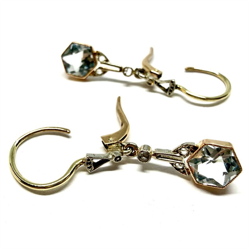 Zlaté závěsné prvorepublikové náušnice s akvamaríny