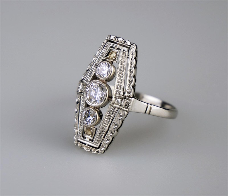 č. 179 466 Zlatý art-deco prsten s diamanty