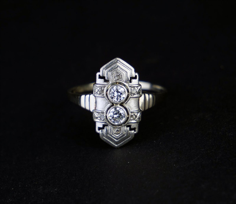 Zlatý art-deco prsten s diamanty