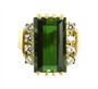 Zlatý designový prsten s diamanty a zeleným turmalínem