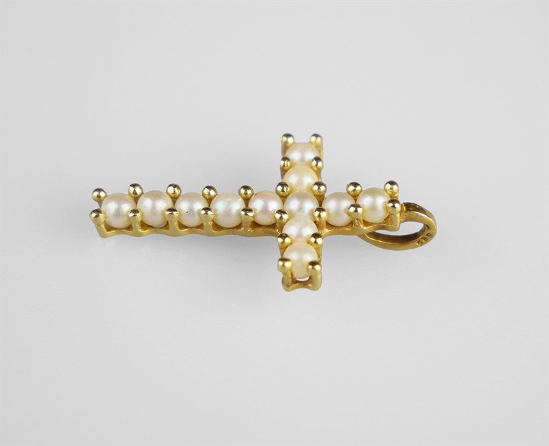 Zlatý kříž s perlami