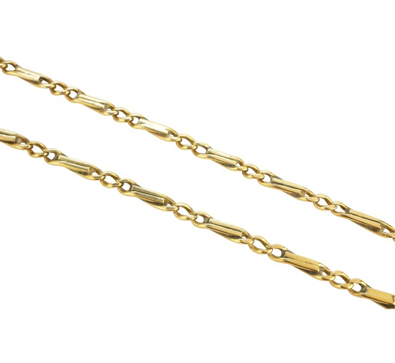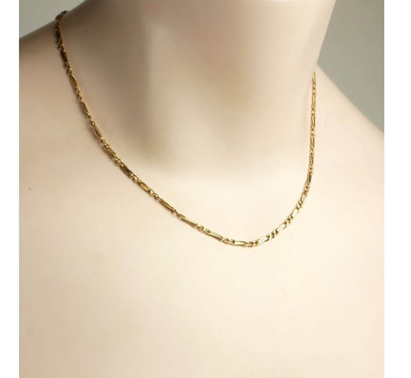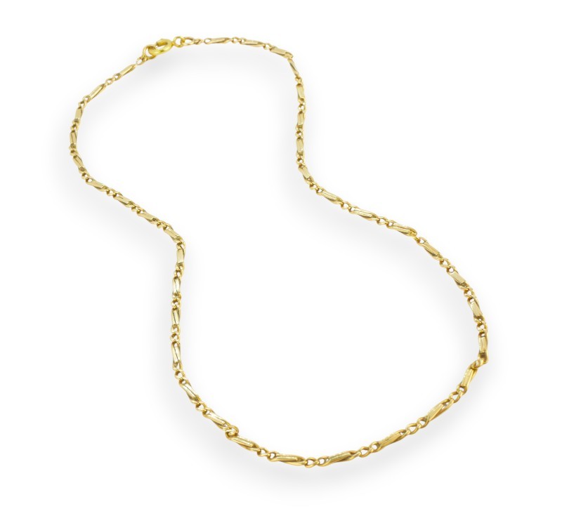 Řetízkový náhrdelník ze žlutého zlata ryzosti 585/1000 (punc liška). Délka náhrdelníku 41 cm, celková hmotnost 7,74 g.