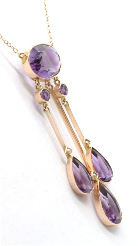 Zlatý náhrdelník s ametysty a perličkami