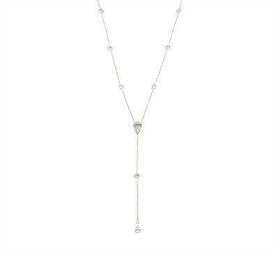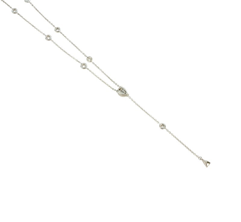 Náhrdelník z bílého zlata ryzosti 585/1000 s diamanty o celkové hmotnosti 0,30 ct. Celková hmotnost šperku je 2,09 g. Délka řetízku je 45 cm.
