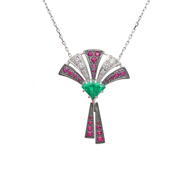 14 karátové zlato 585/1000, celková hmotnost 5,74 g | Design + certifikát | Přírodní kameny vysoké kvality | Přírodní smaragd 0,909 ct | Přírodní diamanty briliantového brusu vzácně bílý + E-F/ 0,208 ct | Přírodní rubíny 22ks: 0,574 ct | Výborný stav, nové | Délka řetízku 40 cm | Výška přívěsku 3,5 cm | Kameny zkontrolovány v gemologické laboratoři | Doložen certifikát pravosti ČGL | Zařizujeme veškerý profesionální zlatnický servis - úpravy velikosti, opravy, rhodiování, čištění, výměnu kamenů, znalecké odhady, certifikace a další služby dle vašich potřeb.