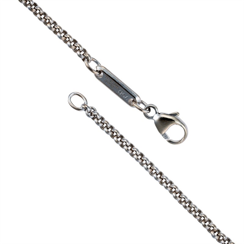Bílé zlato o ryzosti 750/1000 váha 5,62 g délka 19 cm míry srdíčka 1 x 0,7 cm uvnitř srdíčka se volně pohybuje přírodní diamant značeno originál výborný stav osvědčení puncovního úřadu