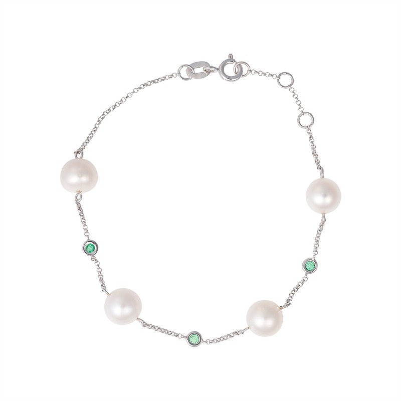 Materiál: bílé zlato o ryzosti 750/1000 Hmotnost: 3,24 g Rozměry: délka 17,5 cm Drahokamy: 3 ks přírodních smaragdů, celková hmotnost 0,09 ct, 4 ks přírodních perel Stav: výborný Původ: nová zlatnická práce, opatřená platným puncem Puncovního úřadu České republiky Pro vaše maximální pohodlí nabízíme kompletní zlatnický servis: úpravy velikosti, odborné opravy, rhodiování, výměny kamenů, profesionální