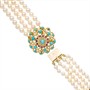 Drahokamy: - 112 ks kultivovaných perel, průměr 6 mm, - 19 ks přírodních tyrkysů, rozměr 2,7–4,8 mm, - 12 ks přírodních rubínů, rozměr 2,0 mm,