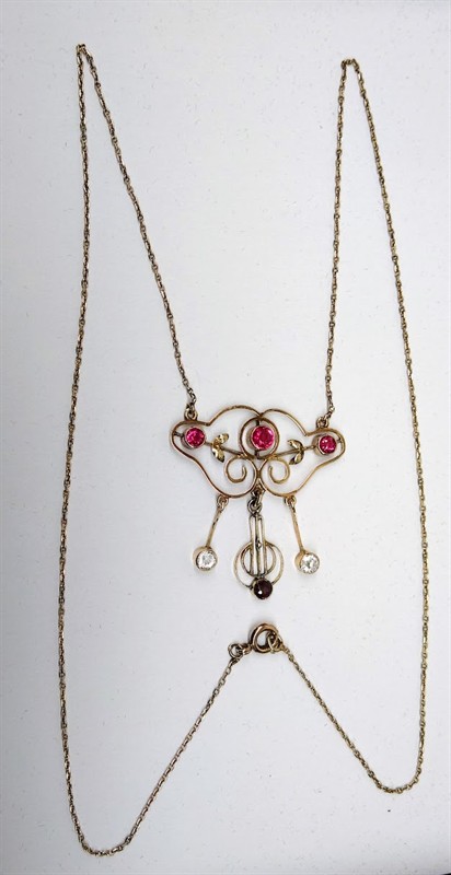 č. 179 963 Zlatý postsecesní náhrdelník s rubíny a leukosafíry