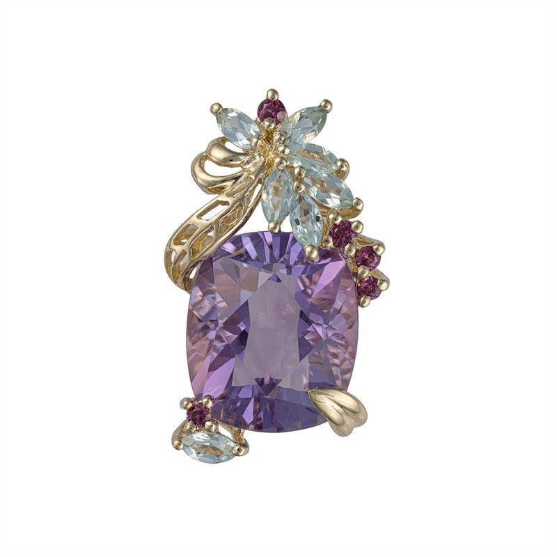 Zlatý přívěsek s ametystem, topazy a almandiny
