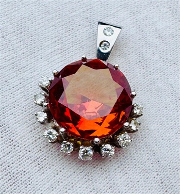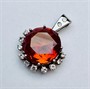 Přívěsek je osazený citrínem o průměru 15 mm, dále je fasováno 12 diamantů briliantového brusu o váze cca. 0,50ct. F-G/ VSI, přívěsek je vyrobeny ze zlata 585/1000 o váze 6,7 gramů. Velikost přívěsku je 29x21mm.