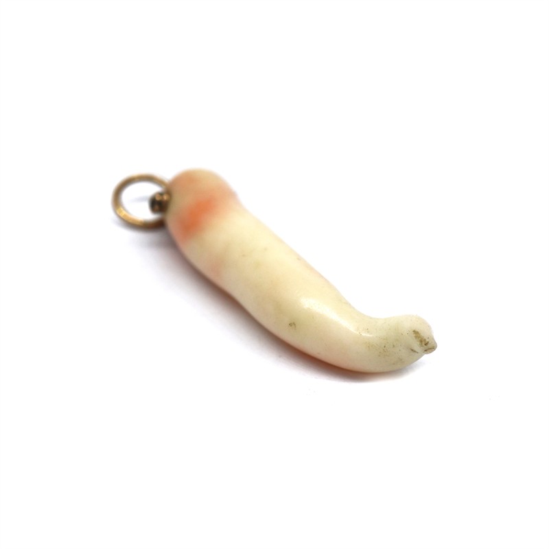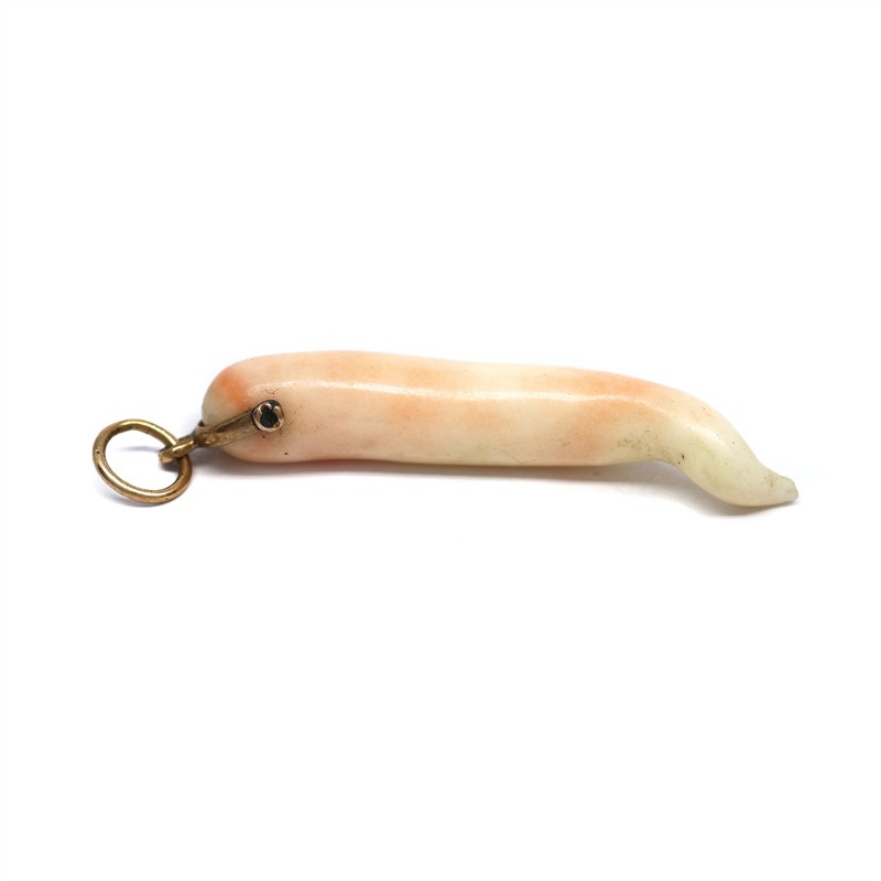 14 karátové zlato 585/1000, celková hmotnost 3,66 g | Přírodní bílý korál | Rok 1920 | Rozměry: výška přívěsku 4,7 cm, korál výška 4 cm | Výborný stav