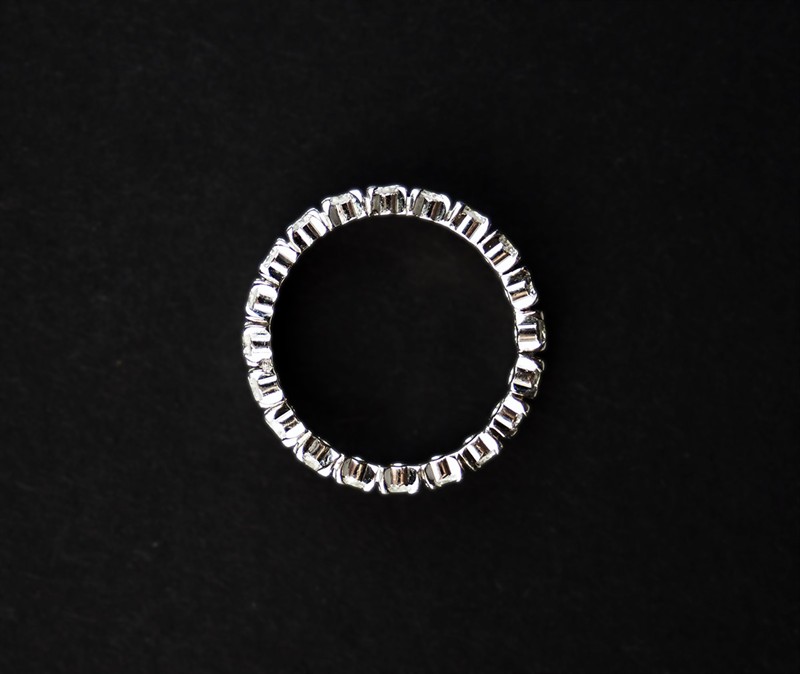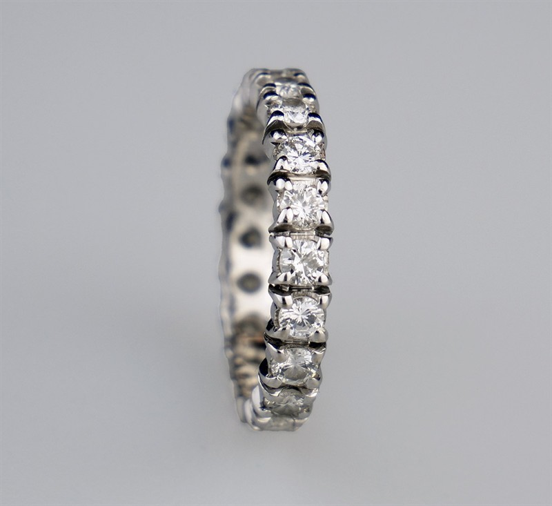 Zlatý prsten eternity s diamanty, 20 ks diamantů briliantového brusu o hmotnosti 0,80 ct, kvalita VS, barva G-H. Celková hmotnost Au 2,44 g/750/1000, punc. Západní Evropa, začátek 21. století, velikost prstenu 49.