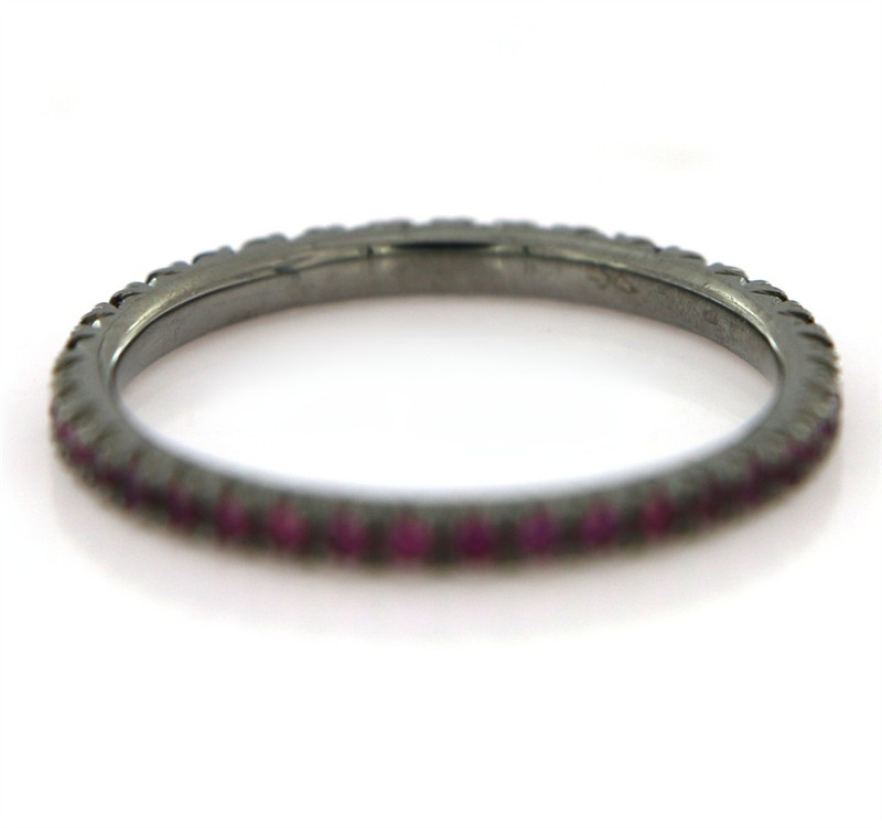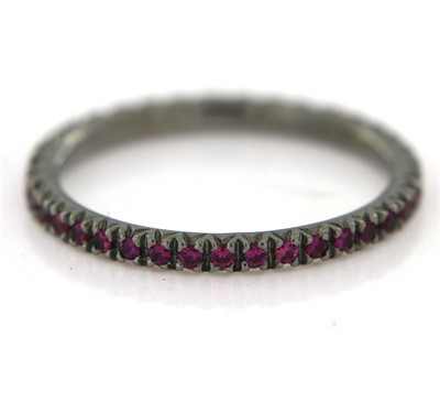 Zlatý prsten eternity s růžovými safíry, tmavě rhodiovaný, přírodní safíry 0,36 ct. Celková hmotnost Au 1,93 g/750/1000, punc. Zánovní nenošený šperk, Itálie, velikost prstenu 55.