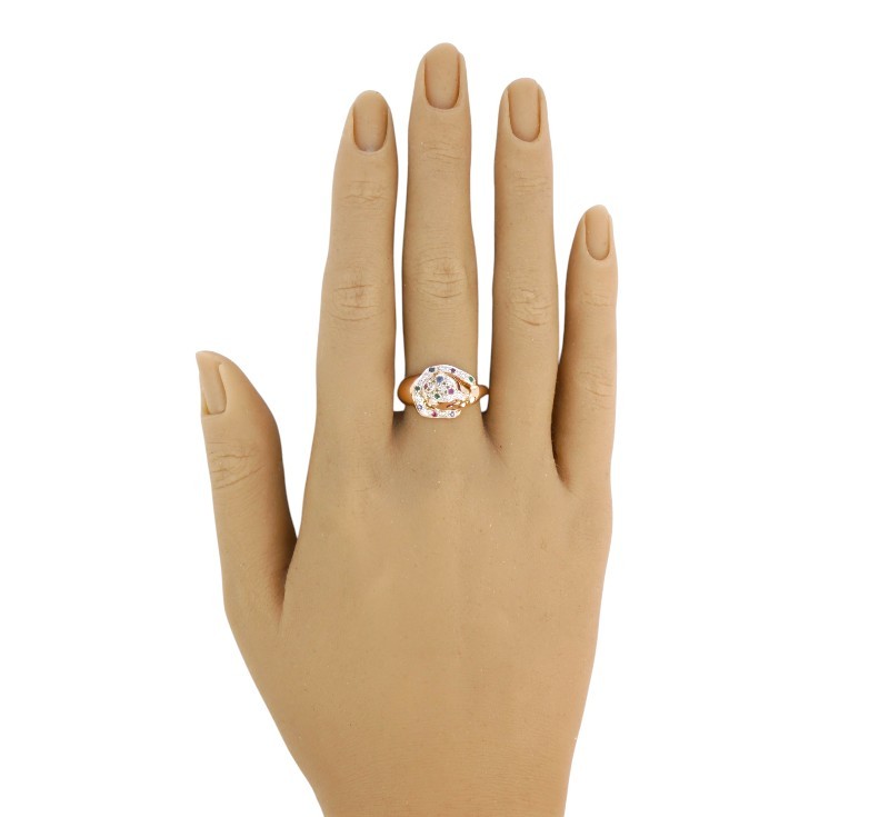 Zlatý prsten PANTER s diamanty, safíry, smaragdy a rubíny