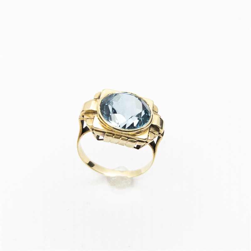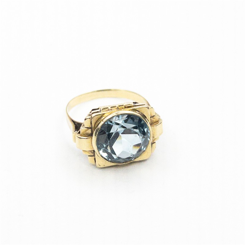 Zlatý prsten se syntetickým akvamarínem, 30. léta 20. století, období Art Deco, zlato o ryzosti 14 karátů 585/1000 o celkové hmotnosti 5,44 g, velikost prstenu 52