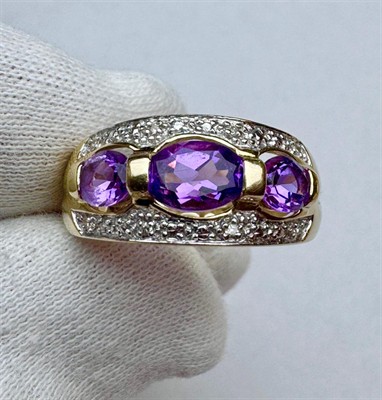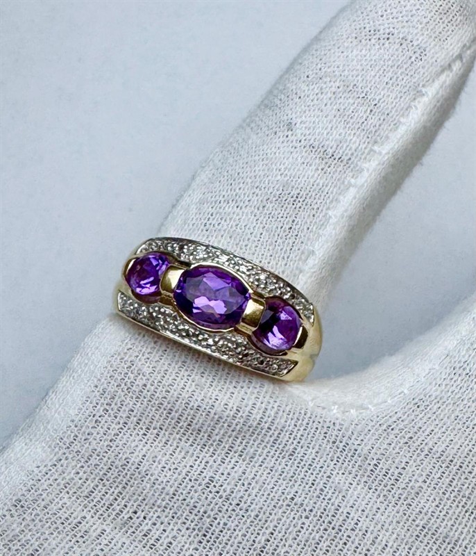 Zlatý prsten s ametysty a diamanty