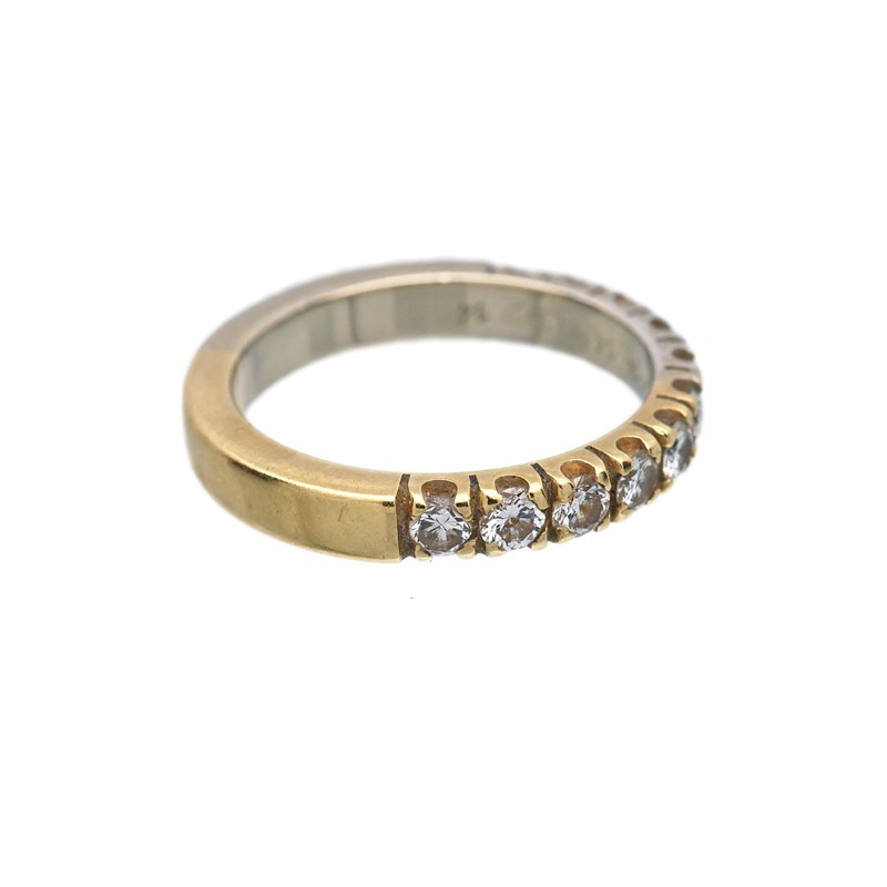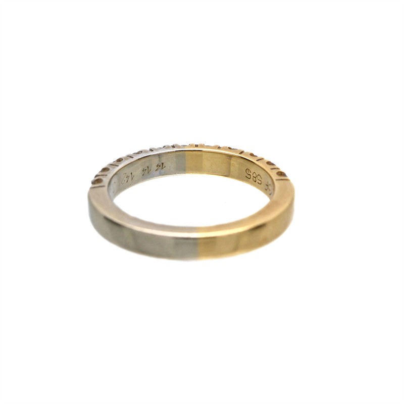 Zlatý prsten v kombinaci bílého a žlutého zlata s brilianty | 14 karátové zlato 585/1000, celková hmotnost 4,61 g | Přírodní diamanty: brilianty 0,40 ct | 80.léta 20.stol | Velikost prstenu 54 | Výborný stav | Kameny zkontrolovány v gemologické laboratoři