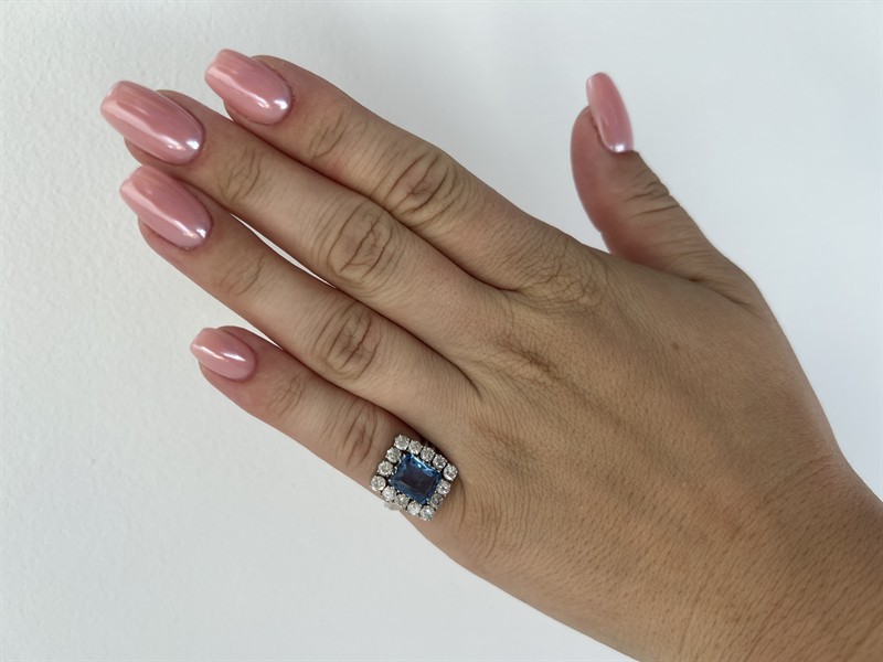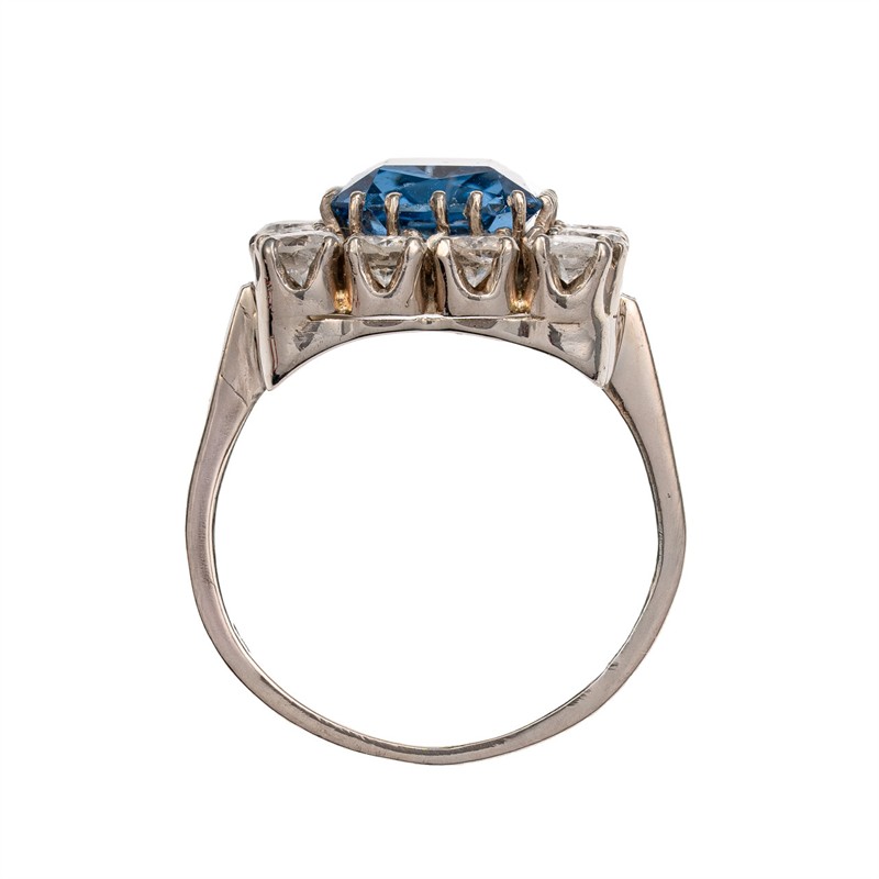 č. 179 629 Zlatý prsten s brilianty a modrým spinelem (výjimečně bílý)