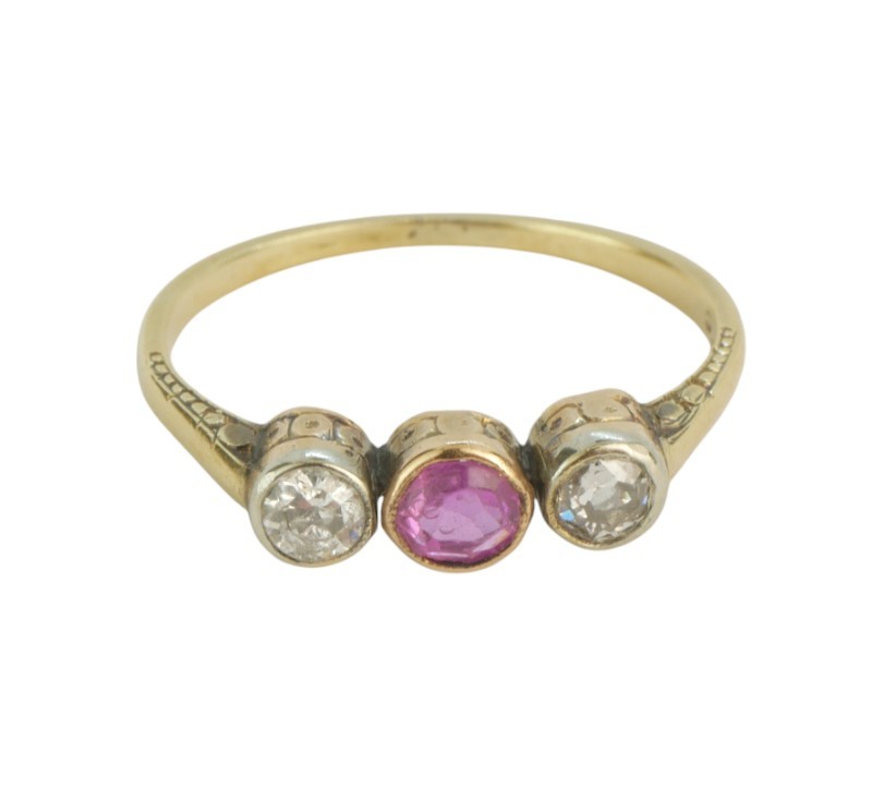č. 179 564 Zlatý prsten s brilianty a rubínem