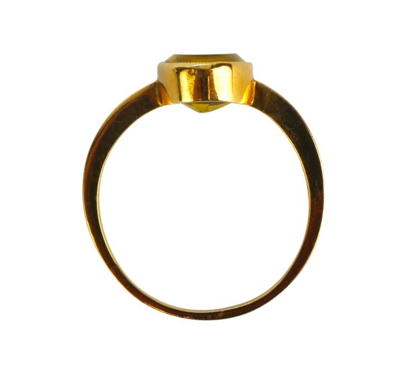 Prsten ze žlutého zlata ryzosti 585/1000 (punc čejka) osazen oválným krásně sytě zbarveným citrínem. Velikost prstenu 63. Celková hmotnost prstenu je 3,08 g.