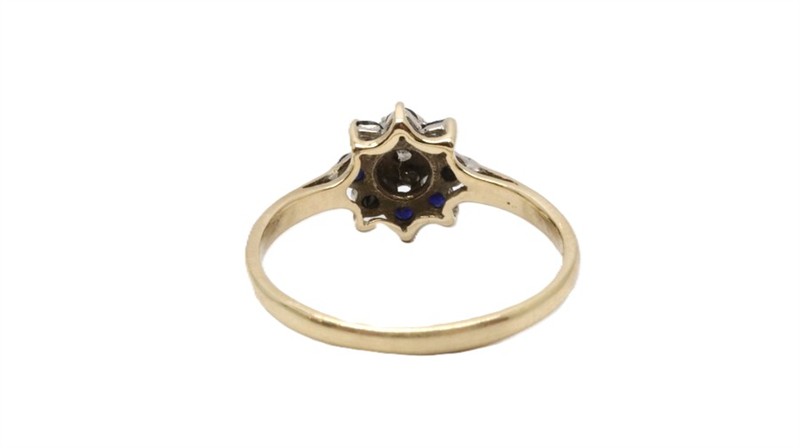 č. 179 996 Zlatý prsten s diamantem a safíry