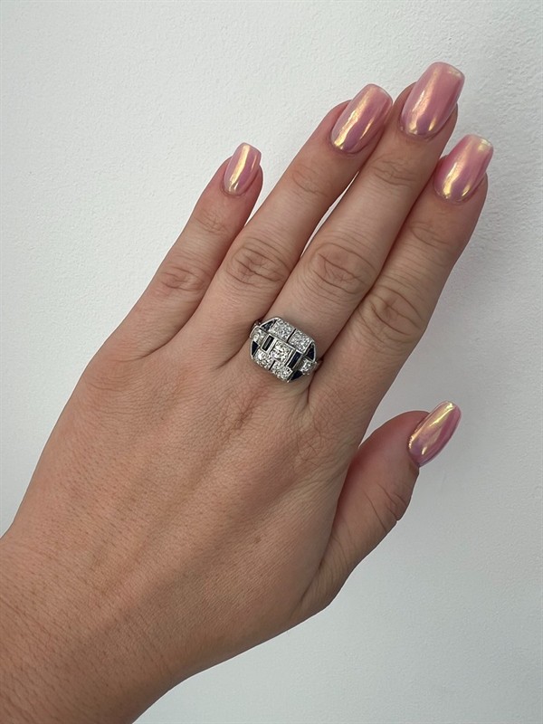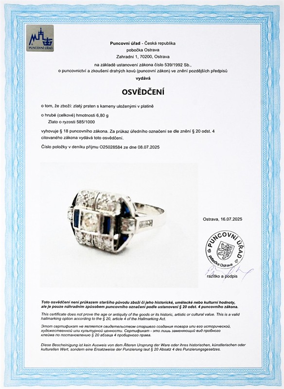 č. 179 770 Zlatý prsten s diamanty 0,55 ct a safíry 0,27 ct Art Deco