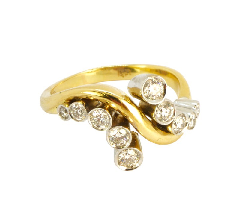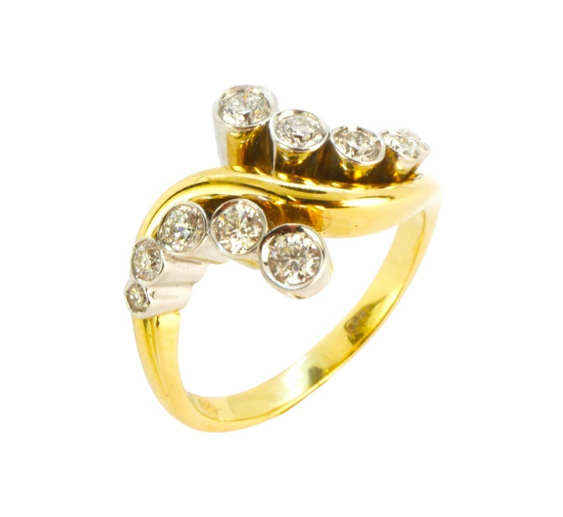 Prsten vyrobený ze žlutého zlata ryzosti 585/1000 osazený diamanty (cca 0,78 ct). Celková hmotnost 6,60 g. Rozměry hlavy 2,5 x 1,5 cm. Velikost prstenu 58,5. K dispozici Osvědčení Puncovního úřadu.