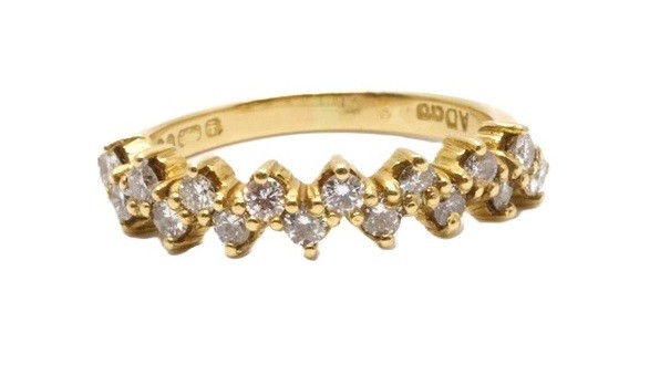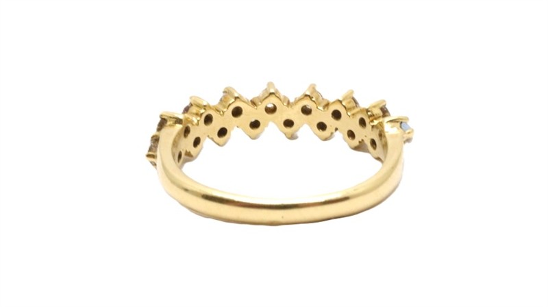 Zlatý prsten s diamanty. Žluté zlato 750/1000. Přírodní diamanty, kvalita SI1 - SI2, barva G - I, celková váha 0,45 ct. Váha prstenu: 3,08 g. Velikost prstenu: 52.