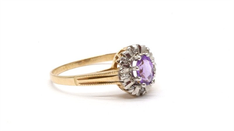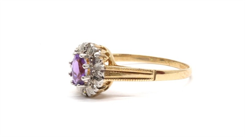 Zlatý prsten s diamanty a ametystem