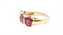 Zlatý prsten s diamanty a rubíny. Žluté zlato 375/1000. Přírodní rubíny, celková váha 1,7 ct. Přírodní diamanty, kvalita SI2, barva H - I, celková váha 0,01 ct. Váha prstenu: 3,63 g. Velikost prstenu: 51,5.