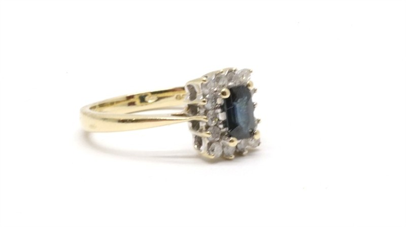 Zlatý prsten s diamanty a safírem