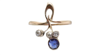 Zlatý prsten s diamanty a safírem