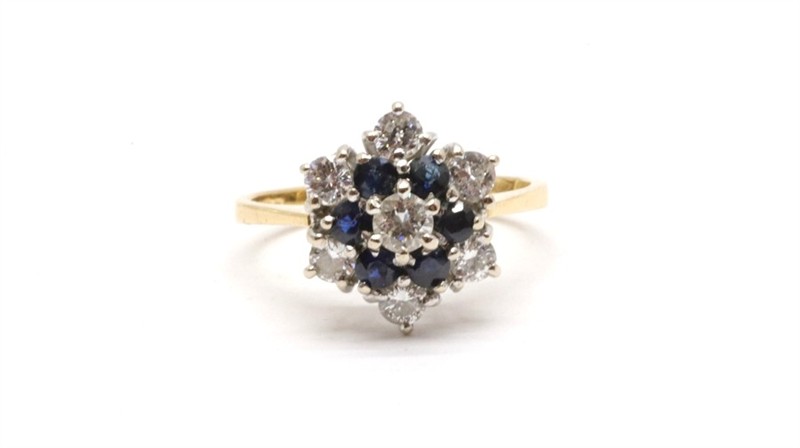 č. 179 973 Zlatý prsten s diamanty a safíry