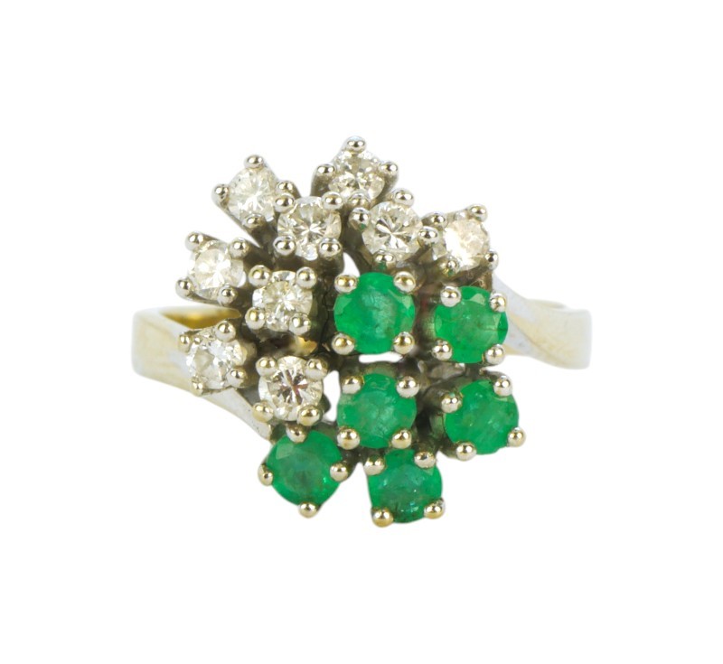 Zlatý prsten s diamanty a smaragdy