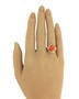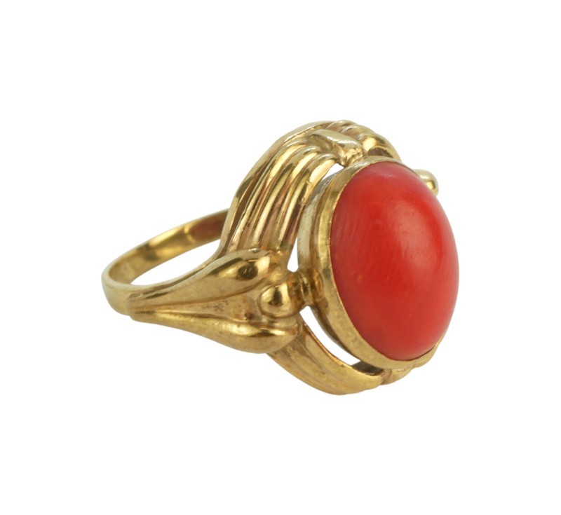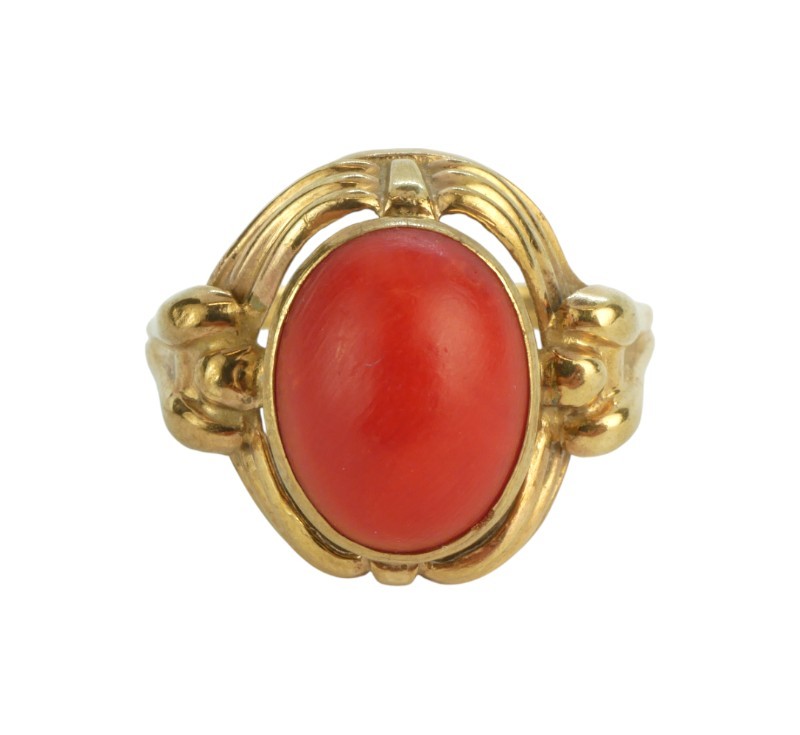 Prsten ze žlutého zlata ryzosti 333/1000 s červeným korálem. Celková hmotnost prstenu je 3,11 g a jeho velikost je 53. Ke šperku je vyhotoveno osvědčení Puncovního úřadu.