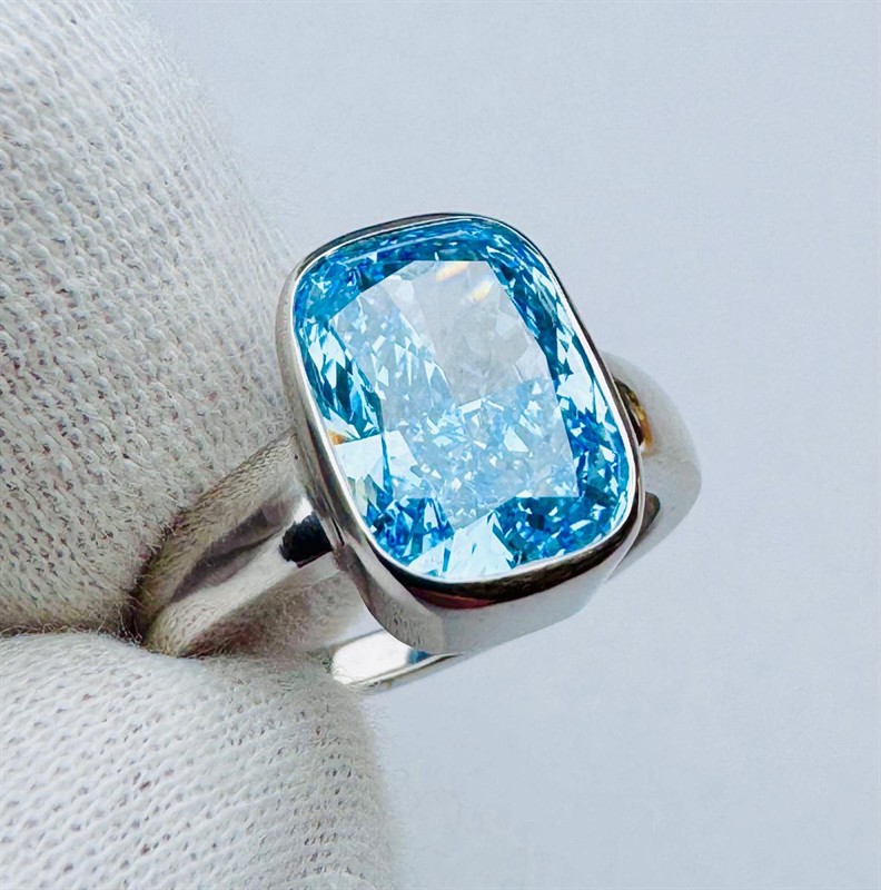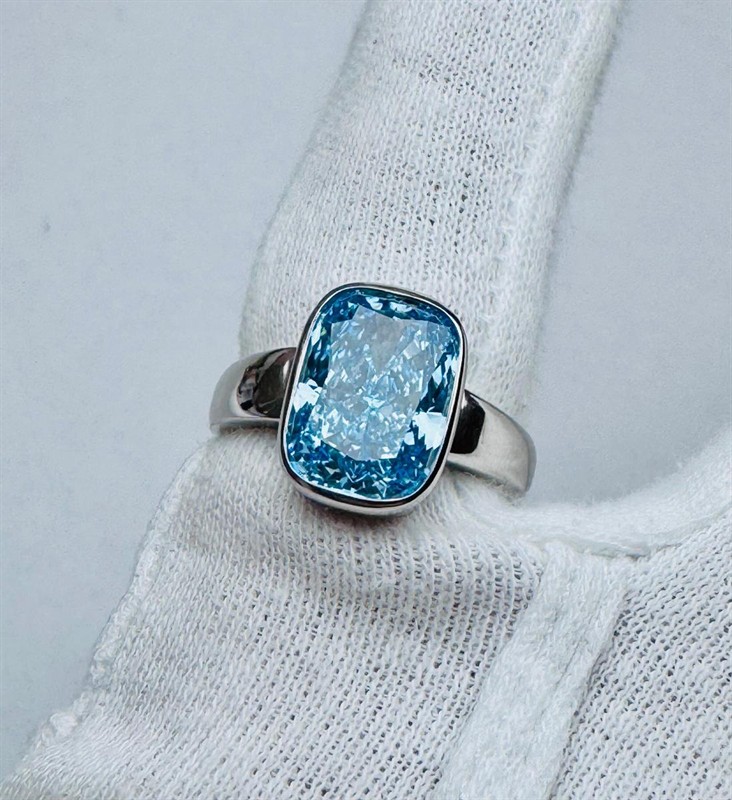 č. 181 333 Zlatý prsten s modrým diamantem - cushion 5,42 ct.