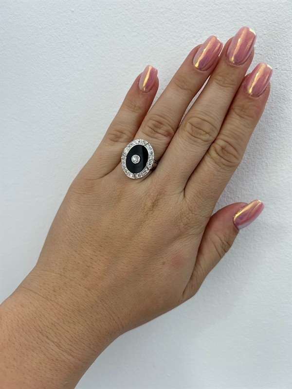 Zlatý prsten s onyxem a diamanty 0,58 ct