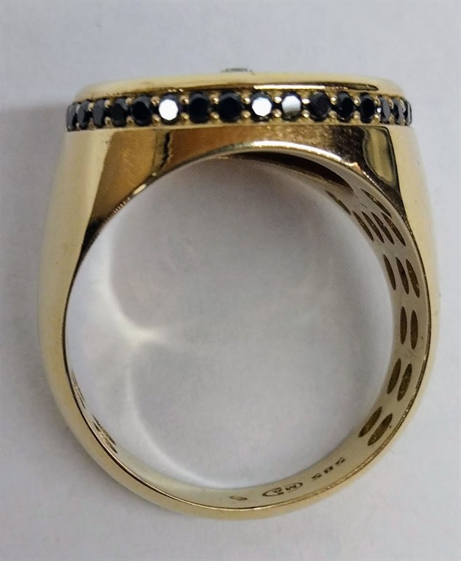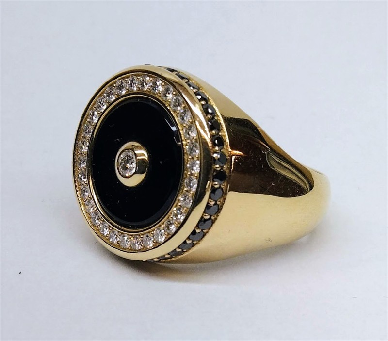 Zlatý prsten s onyxem a diamanty