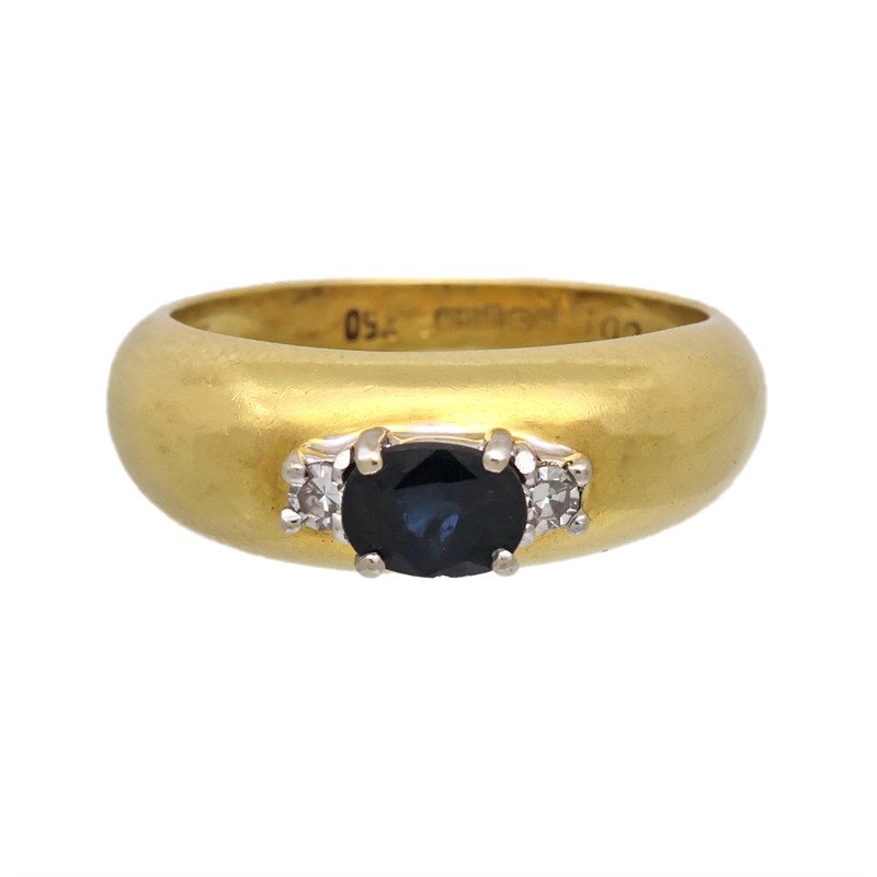 Zlatý prsten s přírodním safírem a diamanty